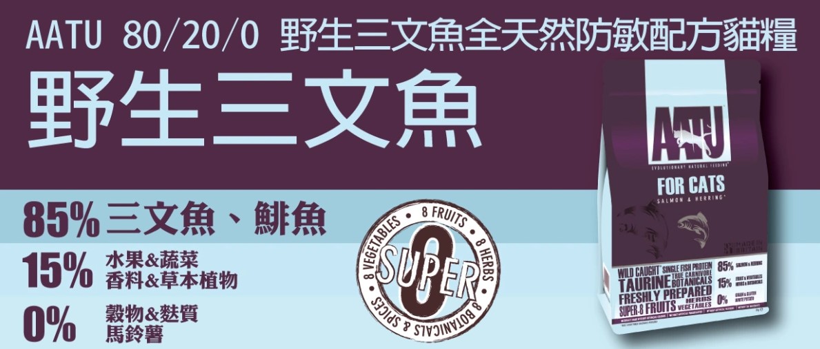 ?AATU選用野生三文魚(非捕魚季節會選用養殖三文魚),魚肉是眾多寵物食品食材中較為昂貴的原材料。魚肉是最容易消化的肉類,是優質蛋白質來源,同時營養價值也是最高。