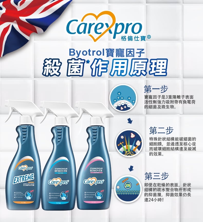 第一步:Byotrol寶寵因子獨特的針狀結構能徹底摧毀細菌及微生物機構,不斷殺滅企圖停留在其表面的任何新生細菌,真菌和病毒。