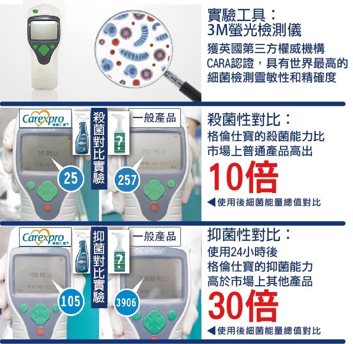 · Byotrol的配方經過最嚴格的測試方法測試,其中包括BS:EN 1276 標準、BS:EN 13697標準、BS:EN 1650標準、 BS:EN 14476標準、殘餘磨耗測試方法及許多其他測試。