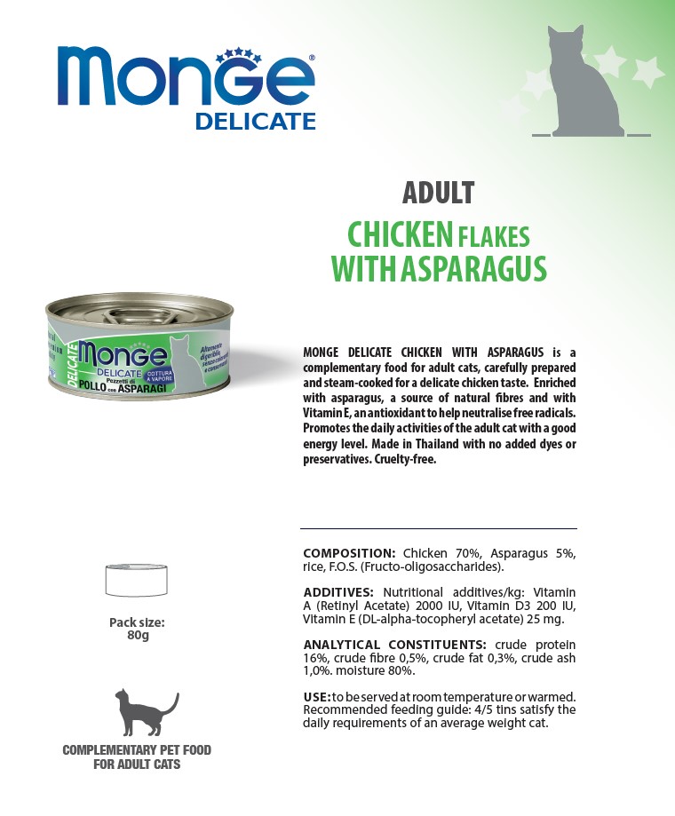 鮮雞肉70%、蘆筍5%、白米2-4%