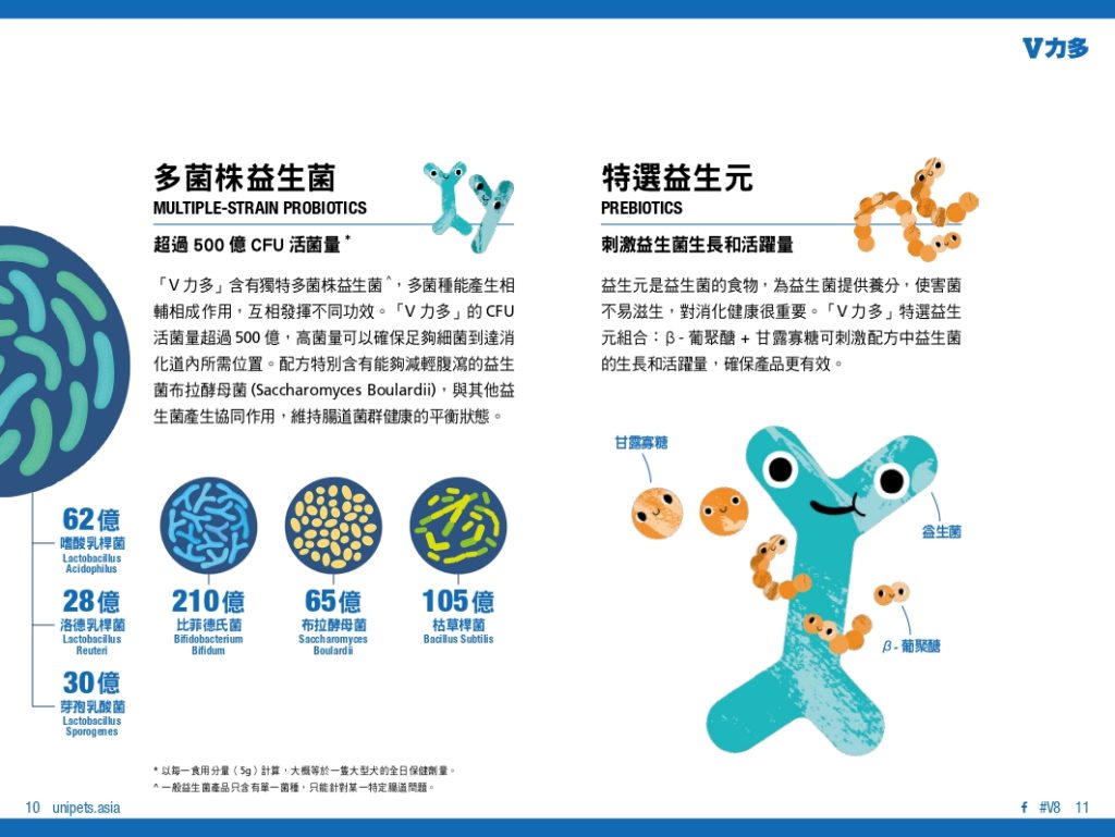 「V力多」含有獨特多菌株益生菌^,多菌種能產生相輔相成作用,互相發揮不同功效。「V力多」的CFU活菌量超過500億,