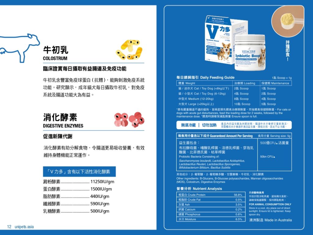 牛初乳含豐富免疫球蛋白(抗體),能夠刺激免疫系統功能。研究顯示,成年貓犬每日攝取牛初乳,對免疫系統及腸道功能大為有益。